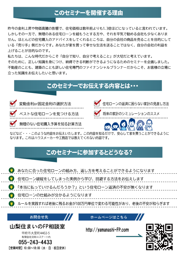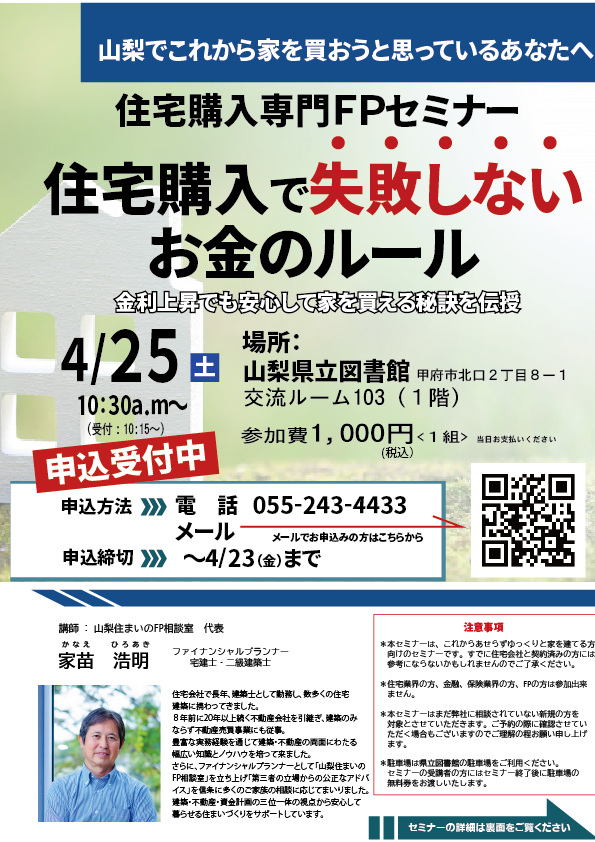 4/25(土)山梨県立図書館「住宅購入で失敗しないお金のルール」セミナー